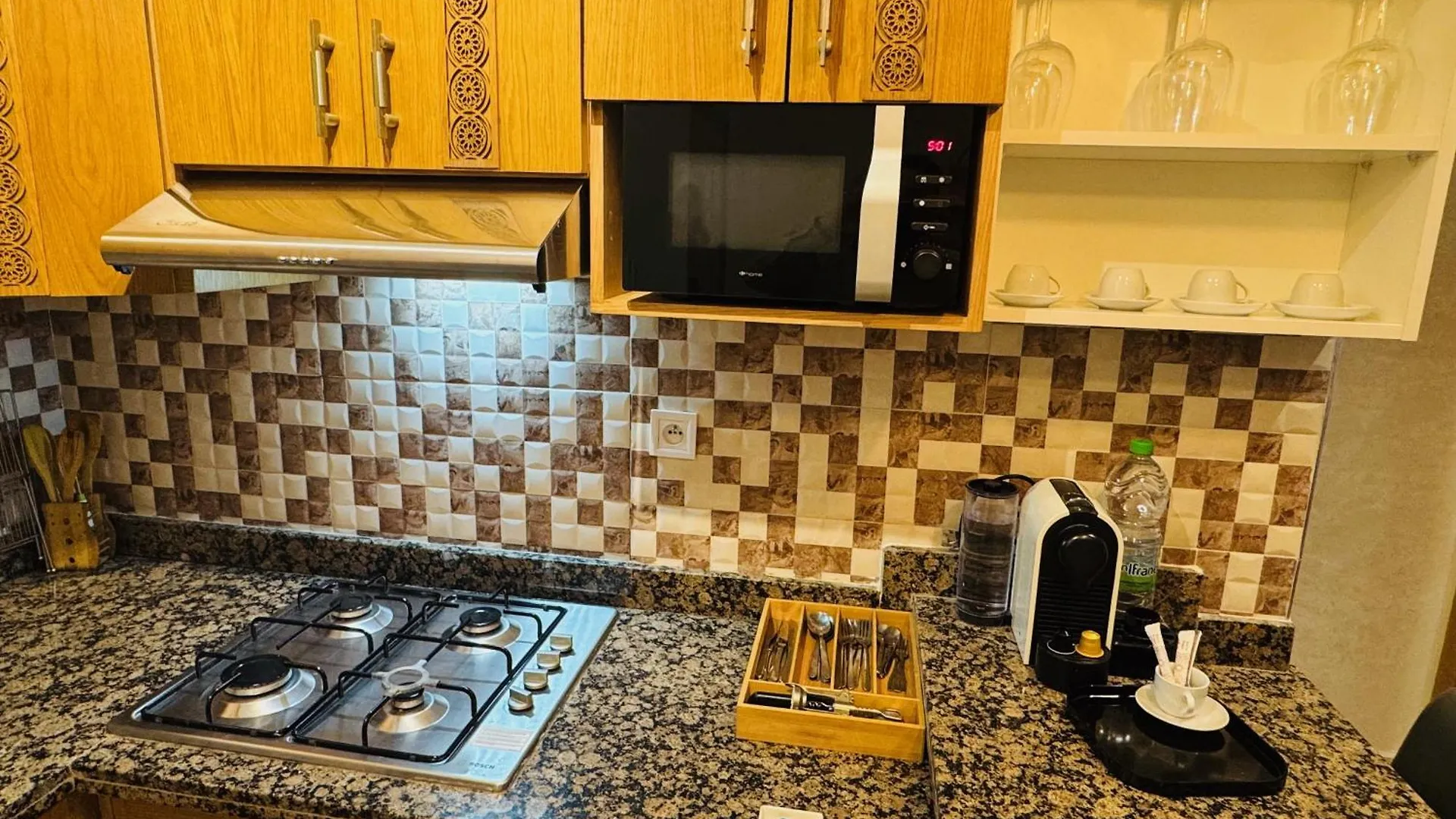 Im Stadtteil Achakkar in Tanger gelegen, ist das Apartment Apartment Arous El Bahr 15 km vom Flughafen Tanger Ibn Batouta entfernt. Eine Kaffee-/Teemaschine, ein Kühlschrank und eine Waschmaschine werden auch für Ihren Komfort angeboten.