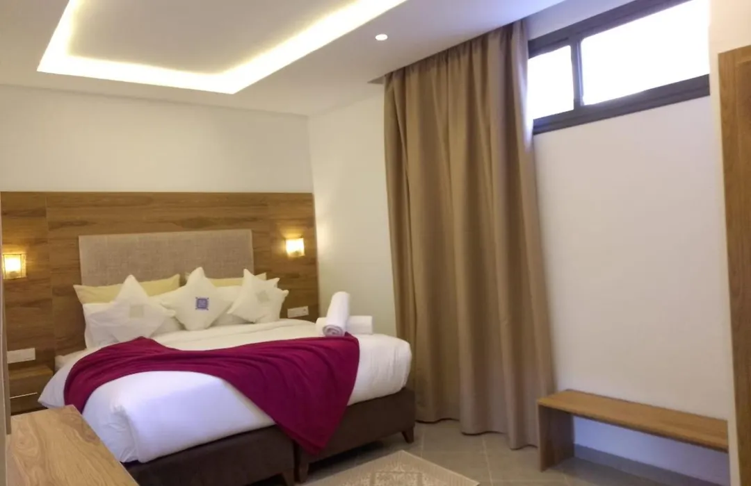 The 3-star Hotel Mechouar Plaza Essaouira, located a 5-minute stroll from Mosque Ben Youssef, features a terrace and a garden. The hotel is situated in the centre of Essaouira, a 5-minute drive of|5 minutes' drive away such cultural attractions as the art gallery "Galerie l'Arbre bleu".